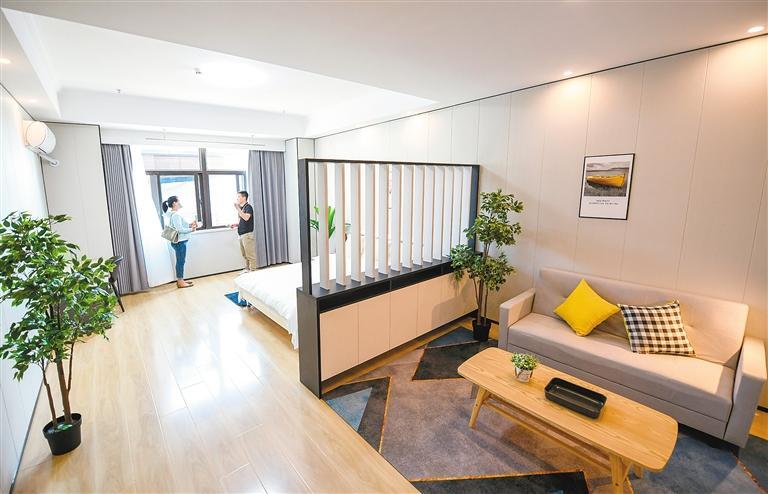簡(jiǎn)單介紹后,工作人員帶著劉女士參觀了位于6樓的樣板間。“真寬敞夠亮堂!”房門打開的一瞬間,劉女士忍不住感嘆道。這套房源有70多平方米,裝修簡(jiǎn)約時(shí)尚、充滿年輕氣息,洗衣機(jī)、冰箱、空調(diào)等設(shè)施一應(yīng)俱全,家具陳列干凈整潔。“真沒(méi)想到條件這么好,房間內(nèi)的裝修和家具都是我喜歡的樣子。尤其是房間里有獨(dú)立的衛(wèi)浴,住起來(lái)會(huì)很方便。”劉女士說(shuō),自己對(duì)房源很滿意。參觀結(jié)束后,劉女士立即向工作人員詳細(xì)詢問(wèn)租住流程。