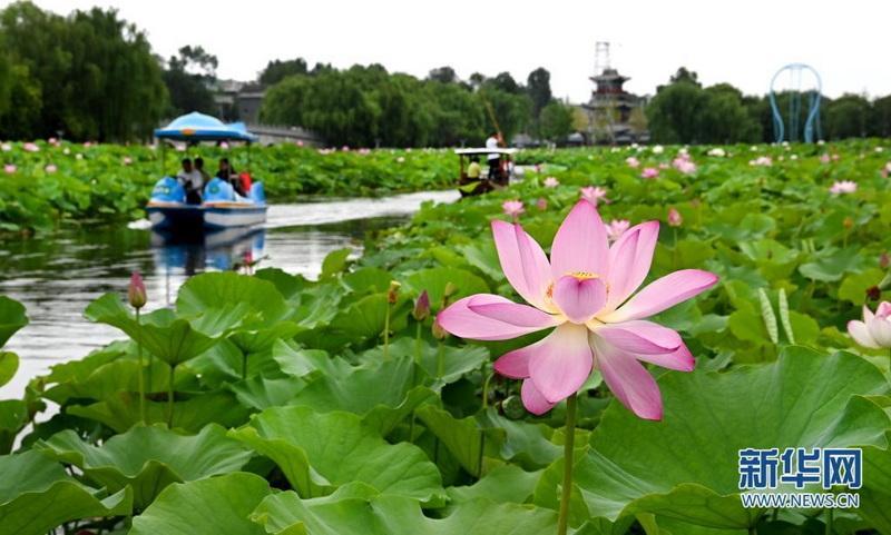 近日,秦嶺深處的陜西省商洛市丹鳳縣棣花古鎮(zhèn)荷花盛開,吸引游人前來觀賞。(
