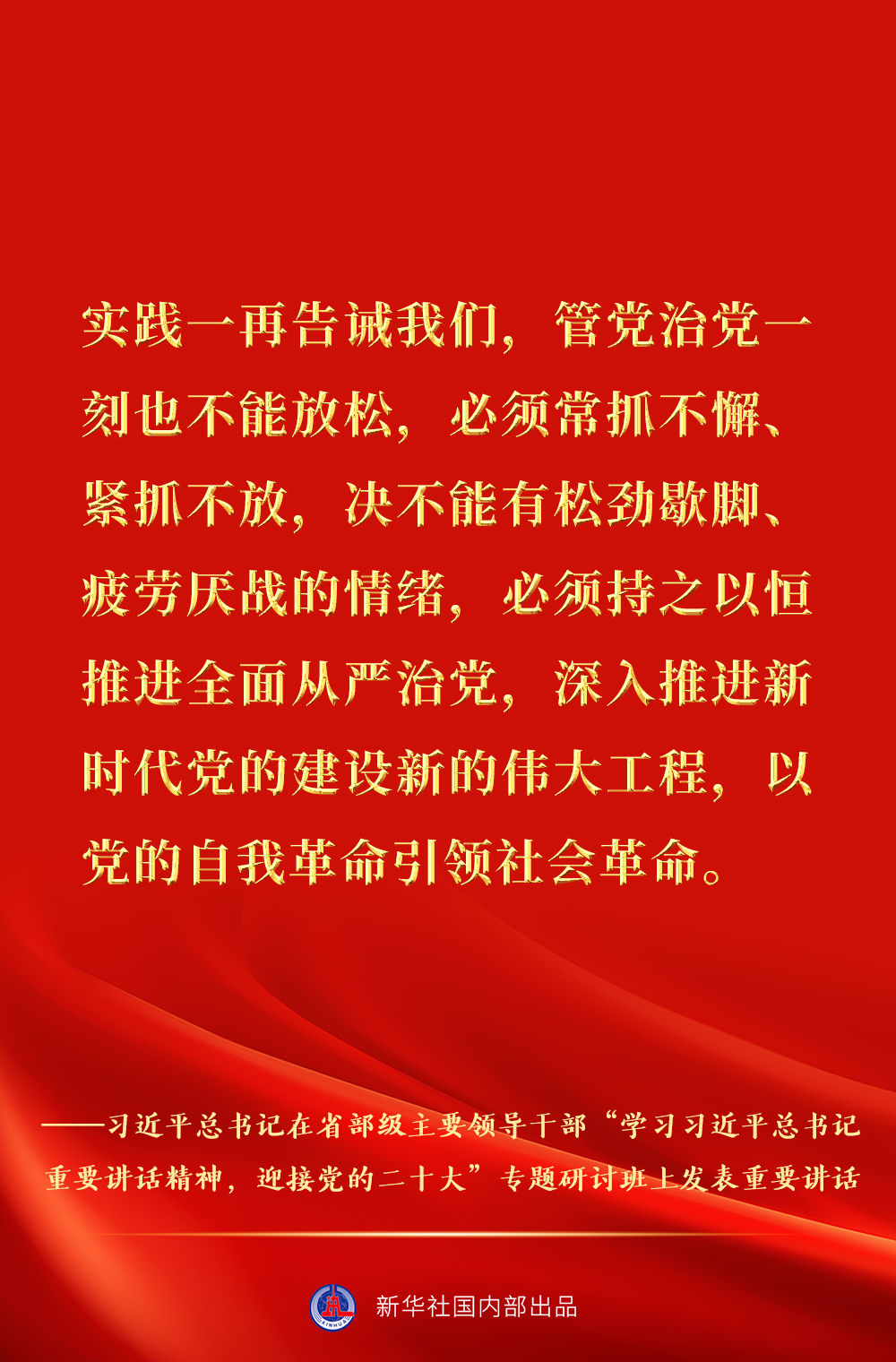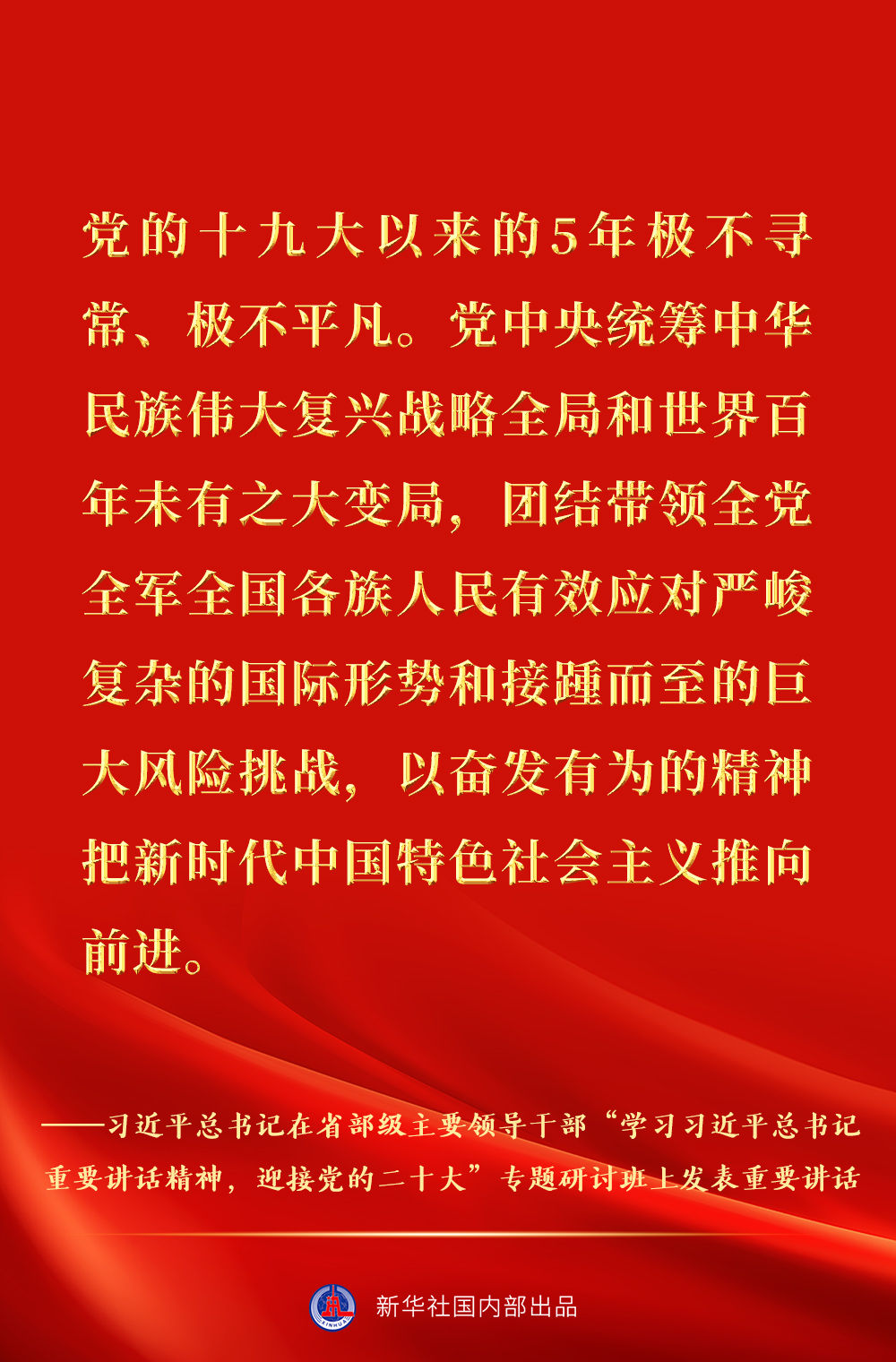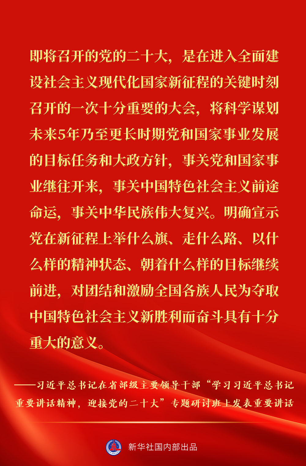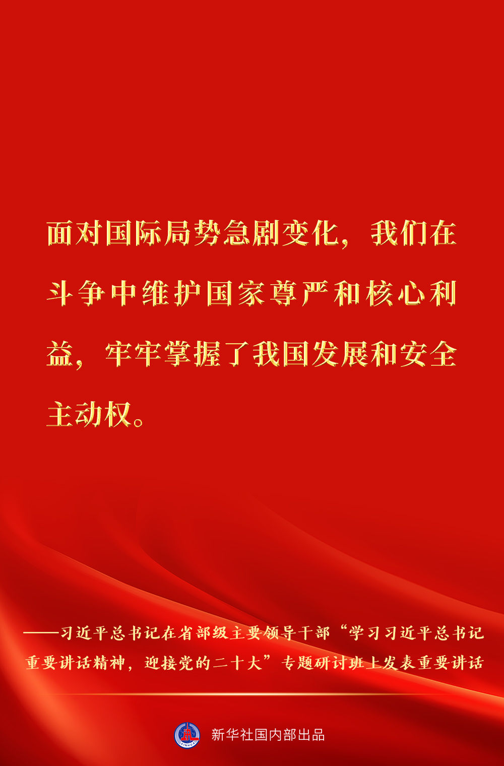 省部級(jí)主要領(lǐng)導(dǎo)干部“學(xué)習(xí)習(xí)近平總書(shū)記重要講話精神,迎接黨的二十大”專題研討班26日至27日在京舉行。中共中央總書(shū)記、國(guó)家主席、中央軍委主席習(xí)近平發(fā)表重要講話。一起來(lái)看金句速覽。