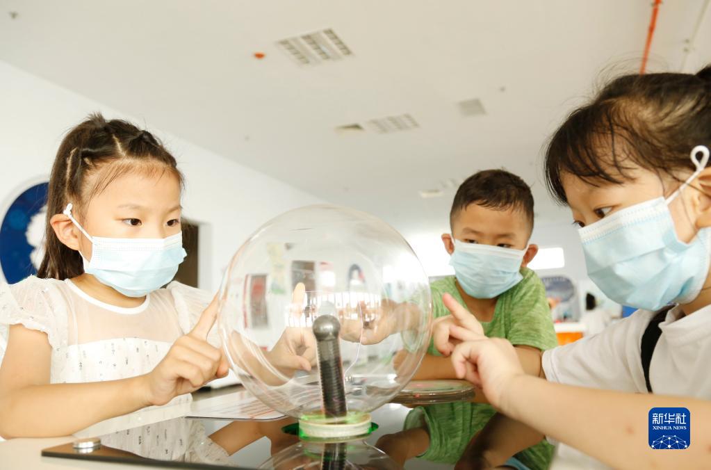 8月3日,在河北省邢臺(tái)市南和區(qū)科技館,賈宋鎮(zhèn)南師村的孩子們在學(xué)習(xí)科普知識。新華社發(fā)(張馳攝)