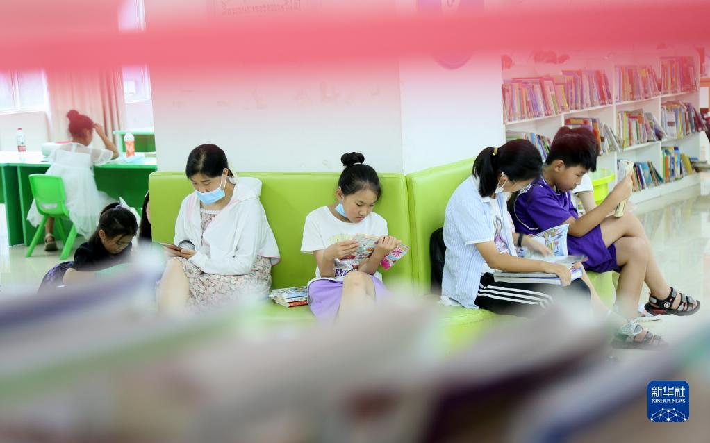 8月3日,在河南省洛陽市汝陽縣圖書館少兒閱讀室,學(xué)生們在閱讀書籍。新華社發(fā)(康紅軍 攝)