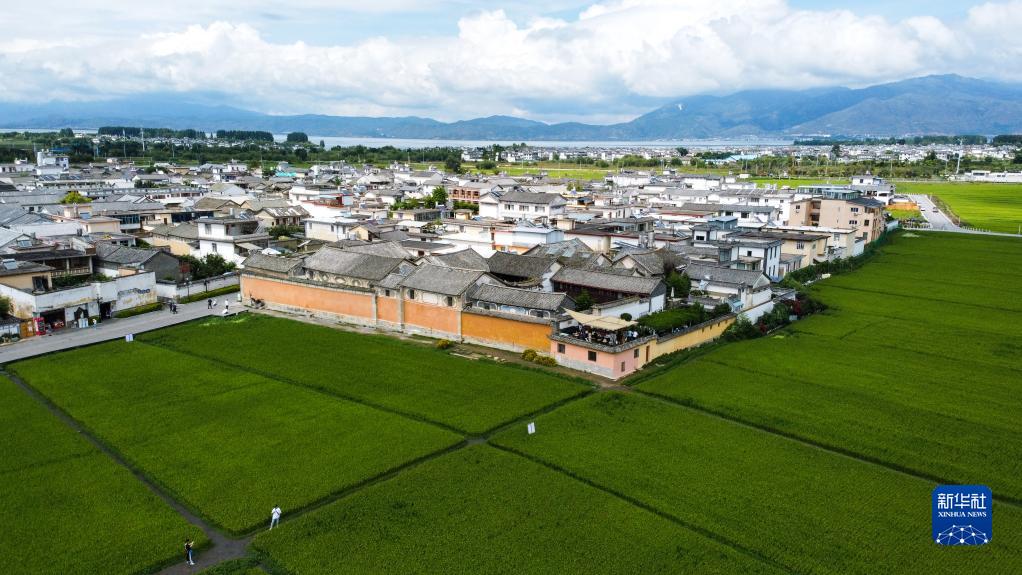 這是8月27日拍攝的云南省喜洲古鎮(zhèn),近處為喜林苑(無人機(jī)照片)。新華社記者 曹夢瑤 攝