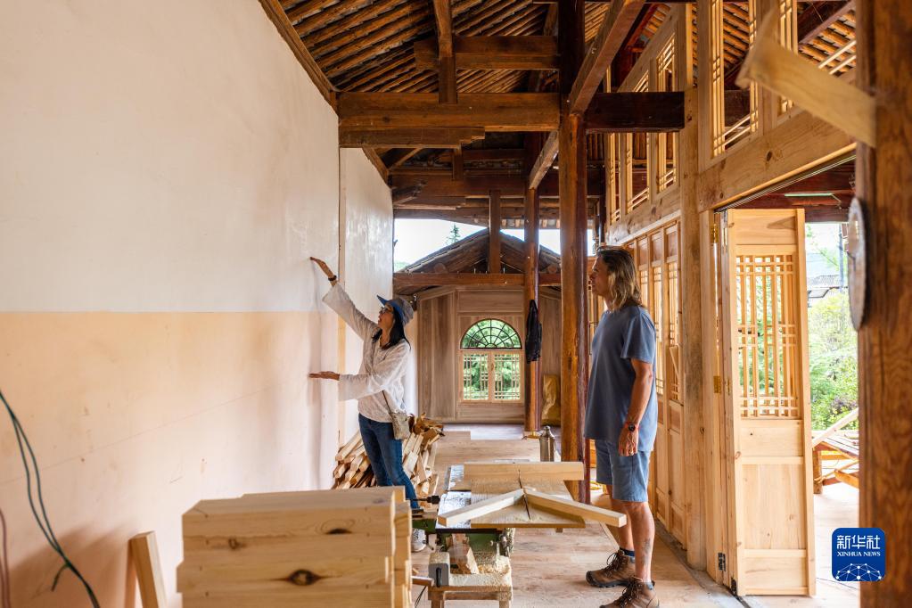 8月31日,林登和妻子瑾妮在沙溪鎮(zhèn)石龍村討論鄉(xiāng)村圖書館的設(shè)計(jì)。新華社記者 曹夢瑤 攝