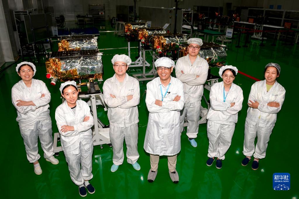 這是“吉林一號”高分03衛(wèi)星部分研發(fā)調(diào)試人員(2022年8月3日攝)。新華社記者 許暢 攝