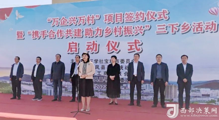 西部決策網(wǎng)訊 9月28日,為進(jìn)一步落實(shí)全市黨派工作協(xié)同協(xié)商會(huì)議精神,九三學(xué)社寶雞市委、鳳縣工商聯(lián)“萬(wàn)企興萬(wàn)村”項(xiàng)目簽約儀式暨“攜手合作共建 助力鄉(xiāng)村振興”三下鄉(xiāng)活動(dòng)啟動(dòng)儀式在鳳縣平木鎮(zhèn)隆重舉辦。 寶雞市人大常委會(huì)副主任、九三學(xué)社寶雞市委主委車爽,鳳縣人大常委會(huì)主任劉淳,中共寶雞市委統(tǒng)戰(zhàn)部班子成員、二級(jí)調(diào)研員毛建錄,中共鳳縣縣委常委、統(tǒng)戰(zhàn)部部長(zhǎng)吳海濤,九三學(xué)社寶雞市委副主委兼秘書長(zhǎng)郭紅全、副主委李獻(xiàn)軍,中共寶雞市委統(tǒng)戰(zhàn)部黨派科科長(zhǎng)湛玉忠,鳳縣平木鎮(zhèn)黨委書記張紅利、鎮(zhèn)長(zhǎng)鄧振宇,鳳縣工商聯(lián)主席陳強(qiáng)參加簽約儀式和三下鄉(xiāng)啟動(dòng)儀式。活動(dòng)儀式由郭紅全副主委主持。