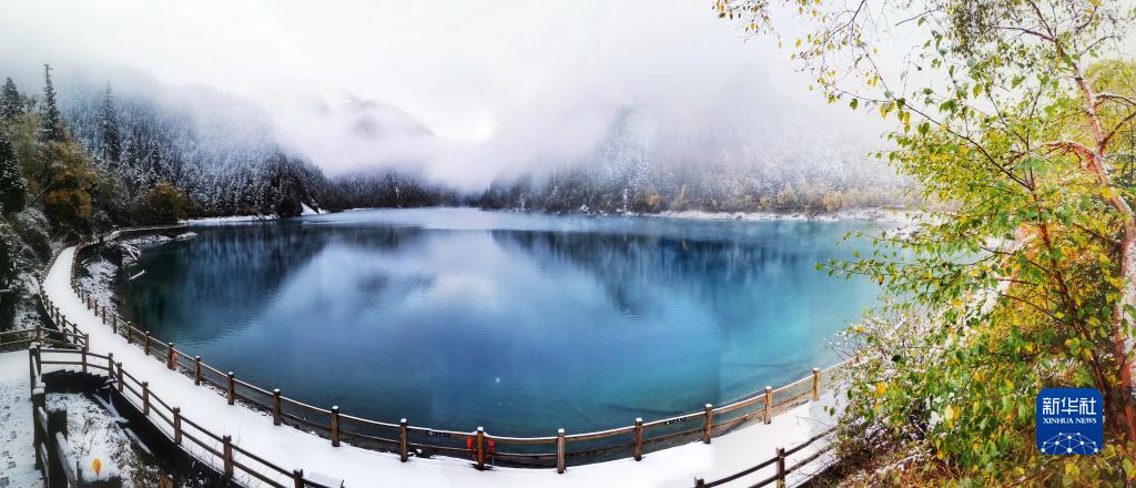 進(jìn)入十月,世界自然遺產(chǎn)地九寨溝迎來一年中最多彩的季節(jié)。國慶假期最后一天,九寨溝景區(qū)內(nèi)多處景點(diǎn)降下今秋第一場(chǎng)雪,美麗景色宛若童話世界。