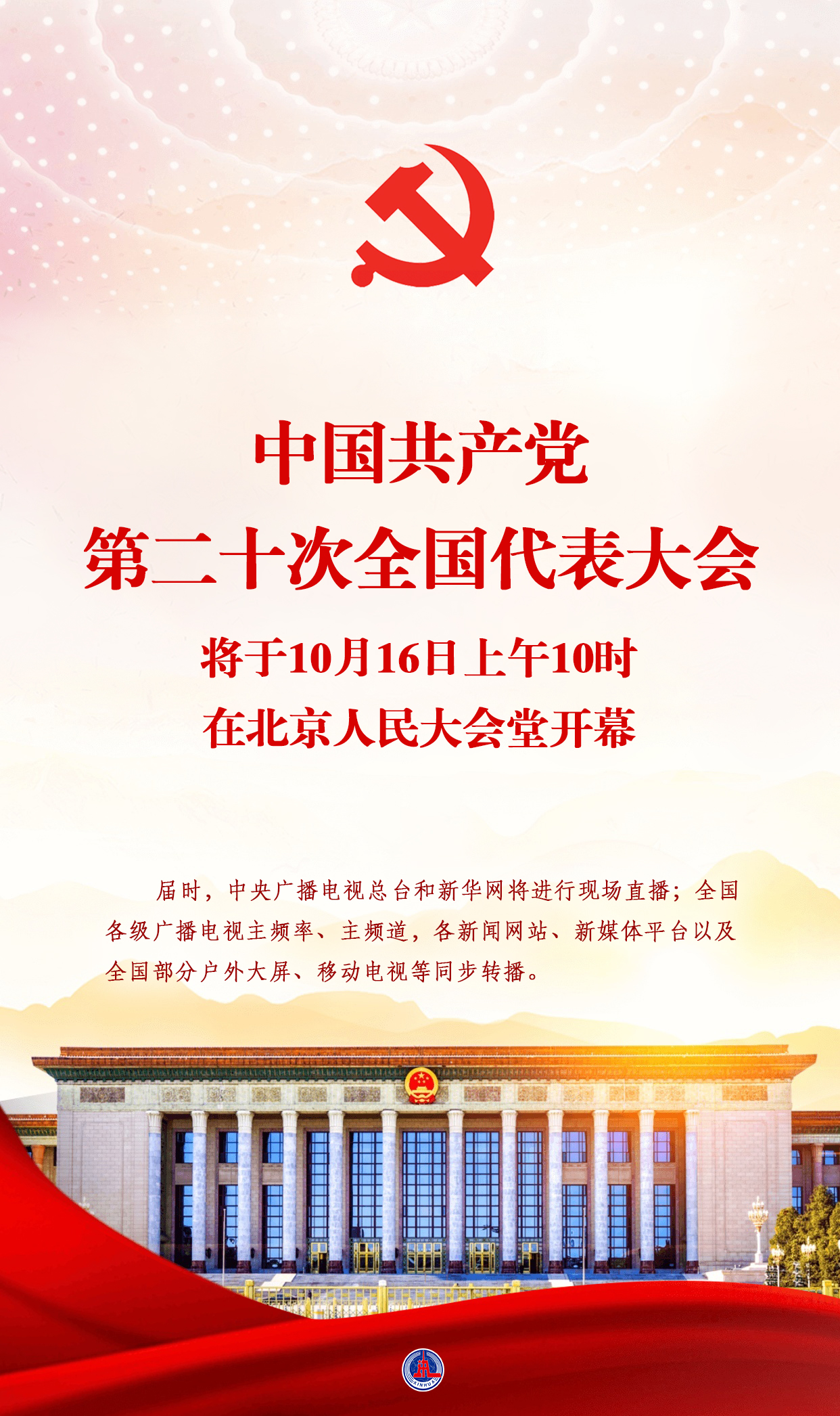 中國(guó)共產(chǎn)黨第二十次全國(guó)代表大會(huì)將于16日上午10時(shí)在北京人民大會(huì)堂開幕。