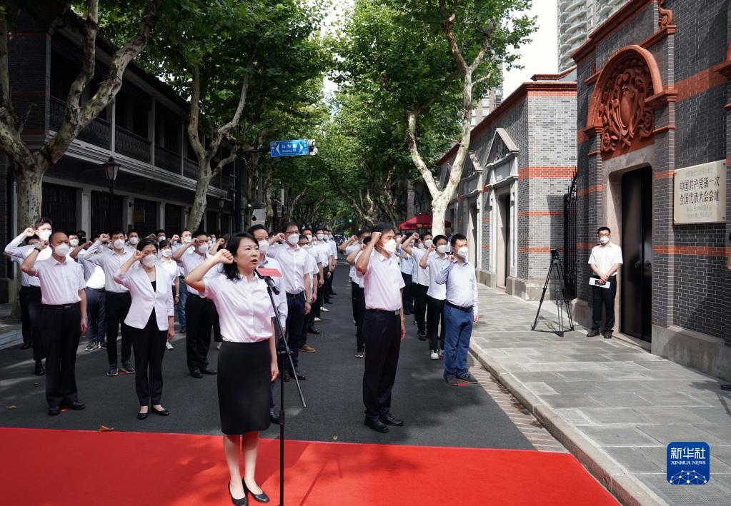 上海市新黨員代表入黨宣誓活動(dòng)在中共一大會址前舉行(2022年7月1日攝)。新華社記者 劉穎 攝