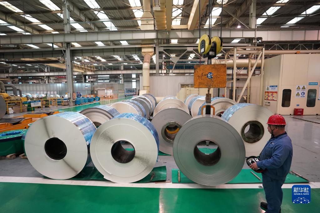 山西太原,中國寶武山西太鋼不銹鋼精密帶鋼有限公司車間,生產(chǎn)線上機器轟鳴,一卷卷薄如蟬翼、光滑如鏡的鋼材經(jīng)過壓延、清洗、包裝等步驟自動化制成。