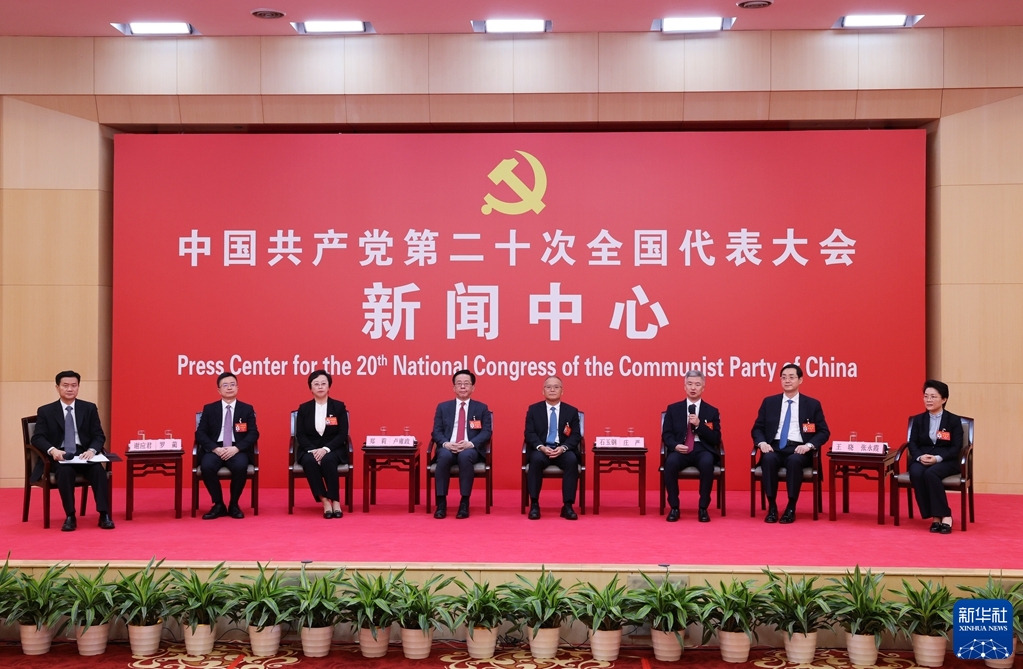 10月19日,中國共產(chǎn)黨第二十次全國代表大會新聞中心舉行集體采訪。重慶、四川、貴州、云南、西藏、陜西、甘肅代表團(tuán)新聞發(fā)言人出席,介紹代表團(tuán)學(xué)習(xí)討論二十大報(bào)告情況,并回答記者提問。新華社記者 陳建力 攝