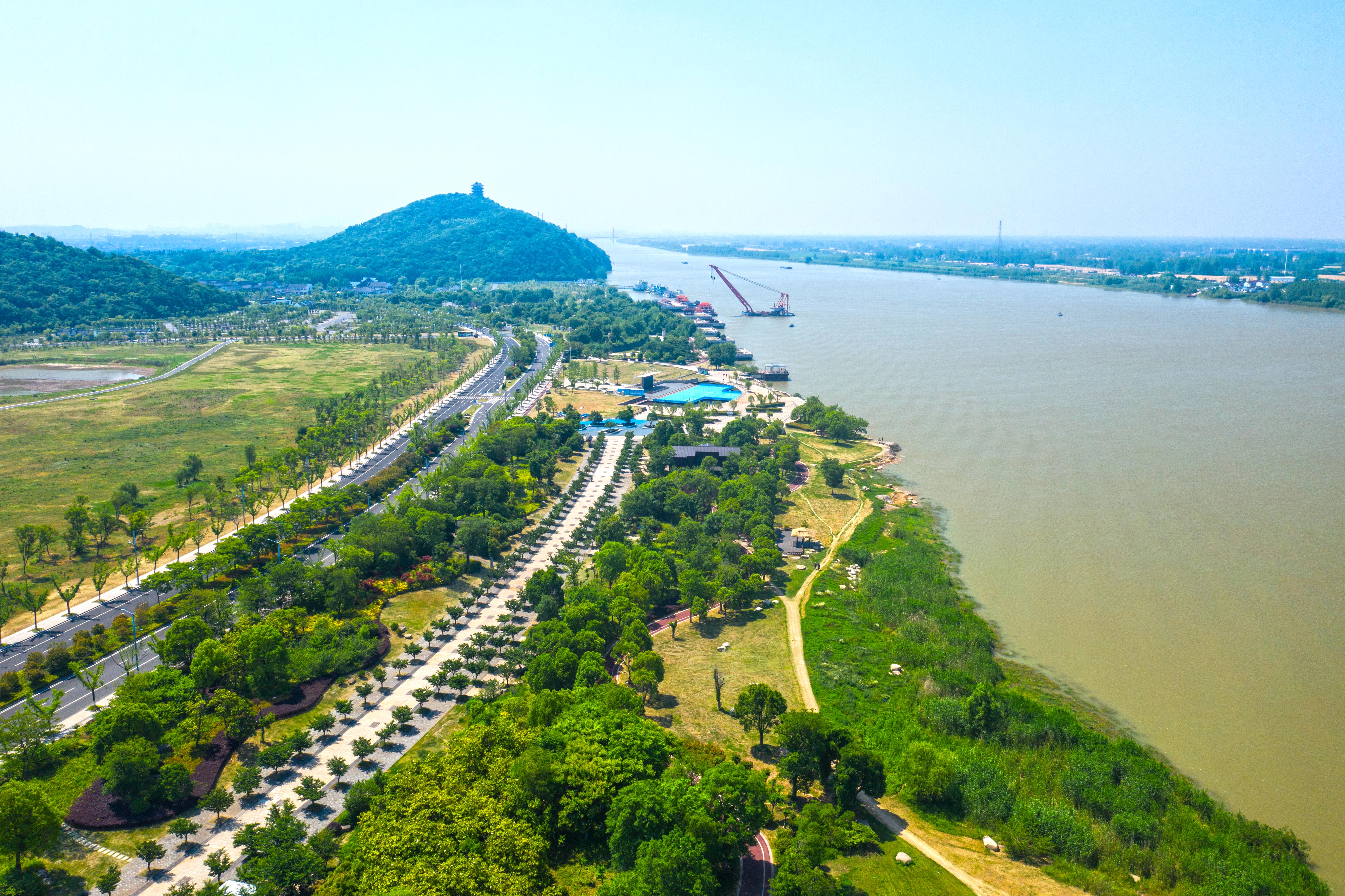 安徽省馬鞍山市長(zhǎng)江岸線景觀帶(2022年5月17日攝,無人機(jī)照片)。新華社發(fā)