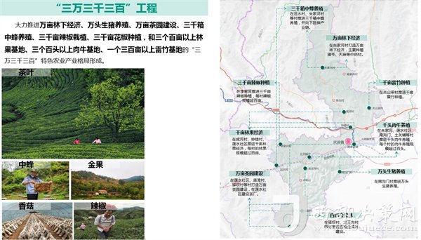 做強(qiáng)一產(chǎn),做優(yōu)特色農(nóng)業(yè)。大力推進(jìn)“三萬三千三百”(萬畝林下經(jīng)濟(jì)、萬頭生豬養(yǎng)殖、萬畝茶園建設(shè);三千箱中蜂養(yǎng)殖、三千畝辣椒栽植、三千畝花椒種植;三個百畝以上林果基地、三個百頭以上肉?;?、一個三百畝以上雷竹基地)工程及“一村一品”工程,形成特色農(nóng)業(yè)產(chǎn)業(yè)格局。