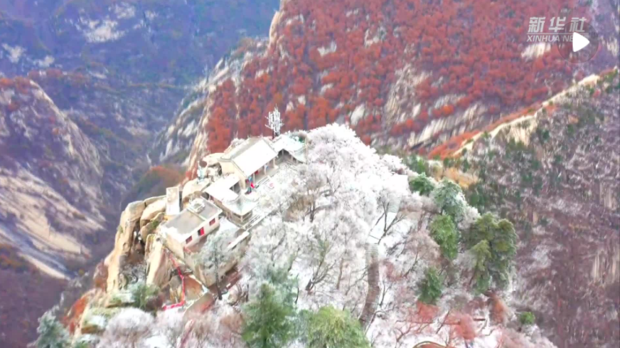 11月11日晚至12日凌晨,陜西華山景區(qū)迎來今冬首場降雪,紛紛揚(yáng)揚(yáng)的雪花為西岳華山披上一層晶瑩的薄衣。雪后華山銀裝難掩蒼翠,峻秀挺拔又清朗多姿。