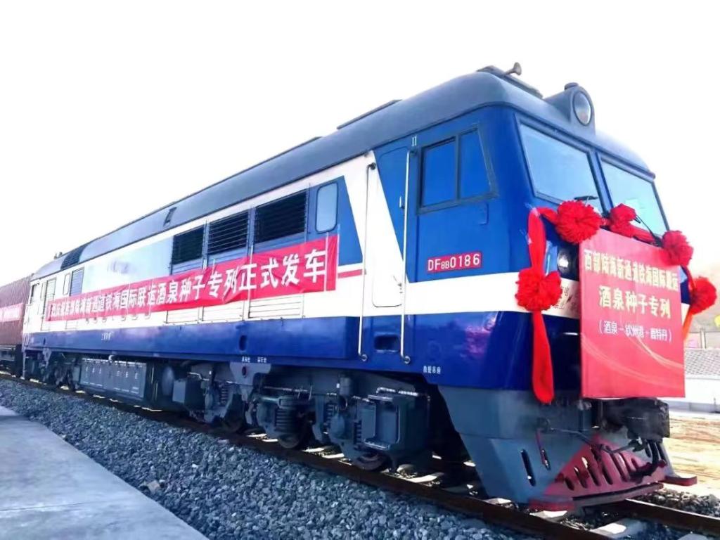 11月17日,西部陸海新通道(酒泉—欽州港—鹿特丹)鐵海國(guó)際聯(lián)運(yùn)班列首發(fā)。(受訪者供圖)
