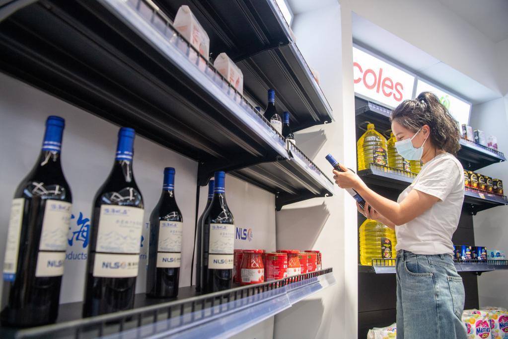 消費(fèi)者在位于重慶解放碑的“陸海新通道國(guó)際消費(fèi)中心”選購(gòu)商品。(2022年5月28日攝)。新華社記者唐奕 攝