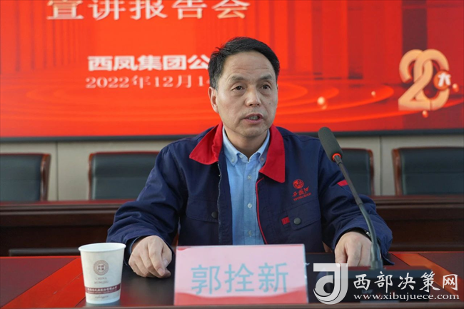 西部決策網(wǎng)訊(記者劉玉 韓宗憲 通訊員 張?zhí)炝ⅲ?2月14日,西鳳集團公司召開黨的二十大精神專題宣講會。西鳳集團公司黨委書記、董事長,股份公司董事長張正,公司領(lǐng)導(dǎo)班子成員,各黨支部書記、基層聯(lián)系點所在支部黨員、黨委系統(tǒng)工作人員共70余人參加會議。集團公司黨委副書記郭拴新主持會議。