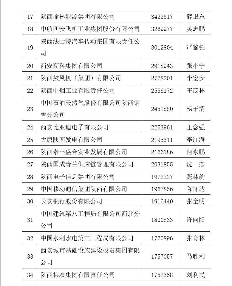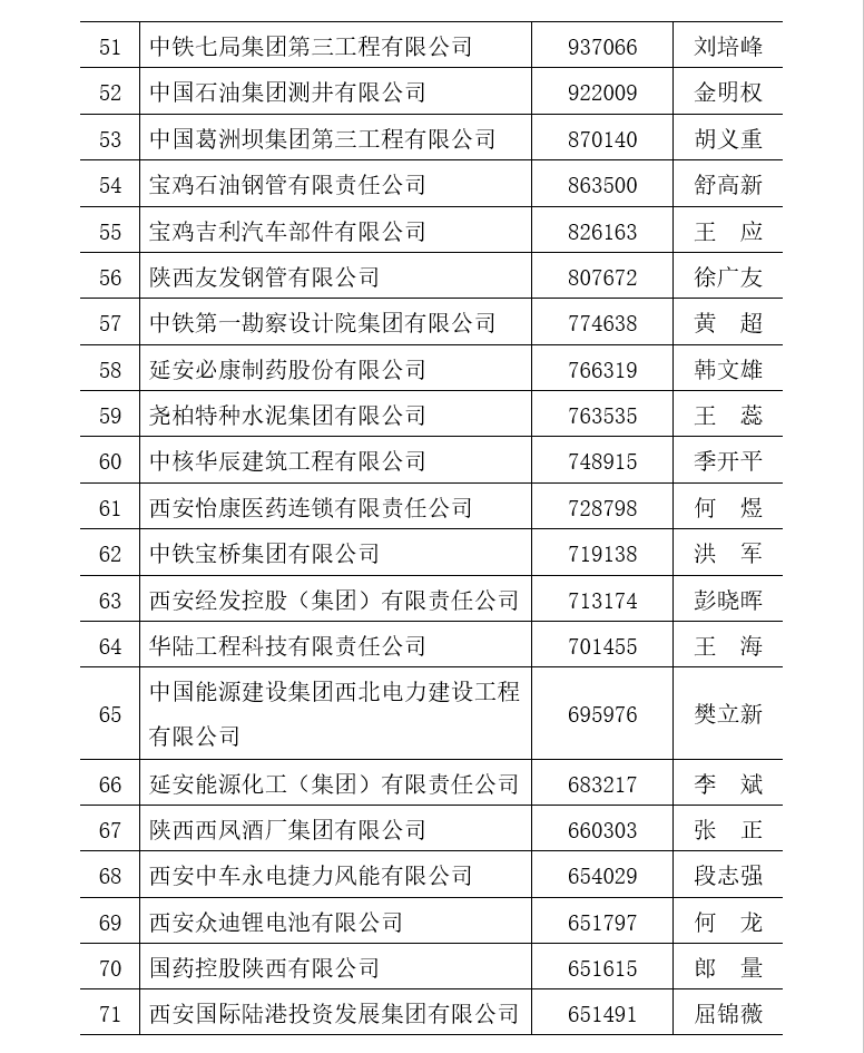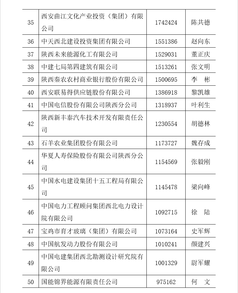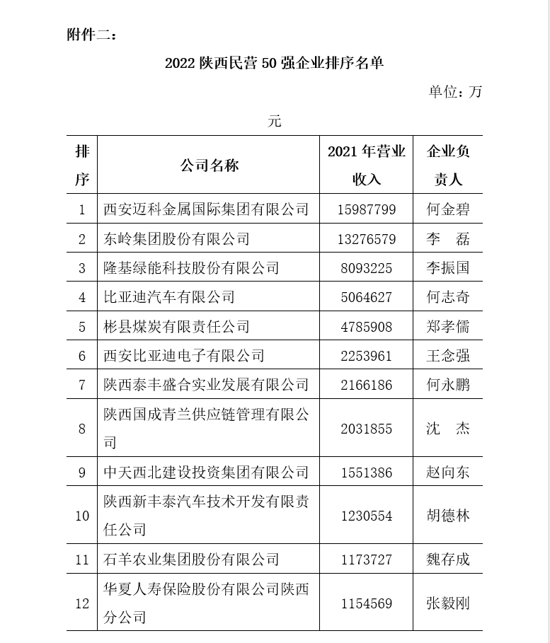 附件二:2022陜西民營企業(yè)50強(qiáng)排序名單