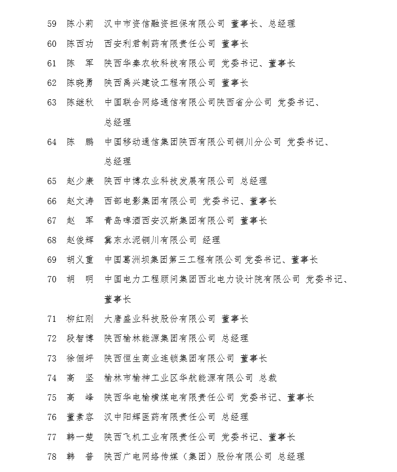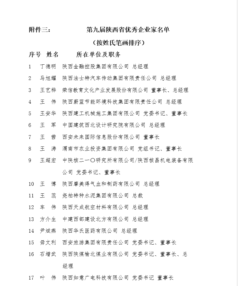 附件三:第九屆陜西省優(yōu)秀企業(yè)家名單