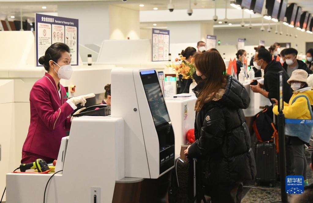 1月17日,在北京大興機(jī)場,乘坐CZ309次北京大興飛往香港航班的旅客辦理值機(jī)。新華社記者 任超 攝