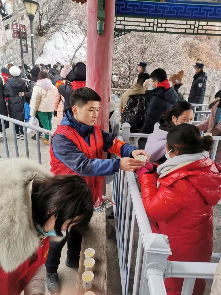 華山景區(qū)舉辦了“華山味·中國年‘冰雪+溫泉’福兔祈福華山過大年”新春迎賓系列活動,推出華山春節(jié)福兔祈福迎賓七大優(yōu)惠,為來華山的游客呈上一道旅游盛宴。華山腳下,最早的中國式搖滾——華陰老腔和華陰素鼓雙非物質(zhì)文化遺產(chǎn)表演,喜鬧新春。春節(jié)期間,華山景區(qū)客流大增,大年初三16:00,入園人數(shù)已接近景區(qū)最大日限流量1.5萬人次,西峰和北峰索道上下站都排起了長龍。當(dāng)天氣溫突降,景區(qū)工作人員貼心地熬煮了熱氣騰騰的紅棗姜湯送到游客手中,游客紛紛贊嘆:“太暖心了。”