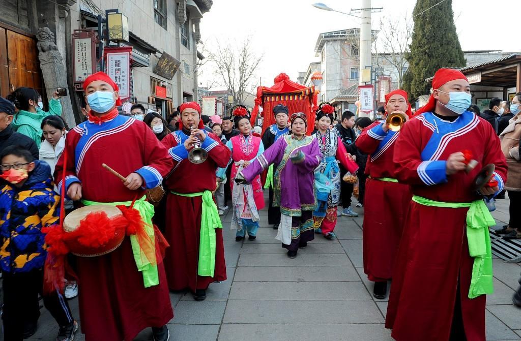 1月23日大年初二12:06,首批乘坐“韓城過大年”定制列車的400多名游客抵達(dá)韓城,走進(jìn)史圣故里,感受古城悠久的文化底蘊和不一樣的韓城年味。游客們沿著新開辟的“古城環(huán)線游”線路,依次游覽古城三廟、民俗博物館,欣賞非遺展覽,在古城美食街品嘗當(dāng)?shù)孛朗场P凶咴诠懦?,社火、秧歌、踩高蹺…… 各色非遺表演精彩紛呈,游客們紛紛拿出手機(jī)留下精彩的瞬間,抱起孩子共享這難得的歡樂時光,體驗這里濃濃的年味。