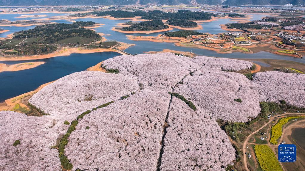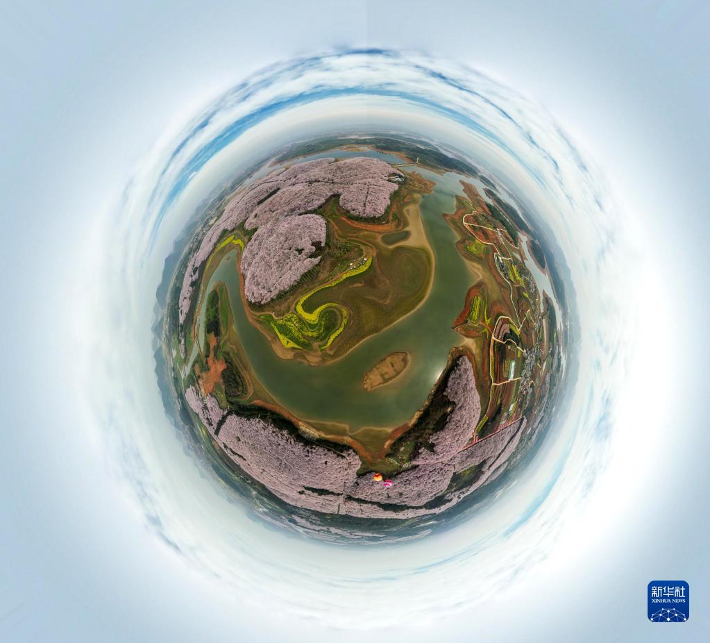 這是3月21日拍攝的貴州省貴安新區(qū)櫻花園(無人機(jī)全景照片)。新華社記者 楊文斌 攝