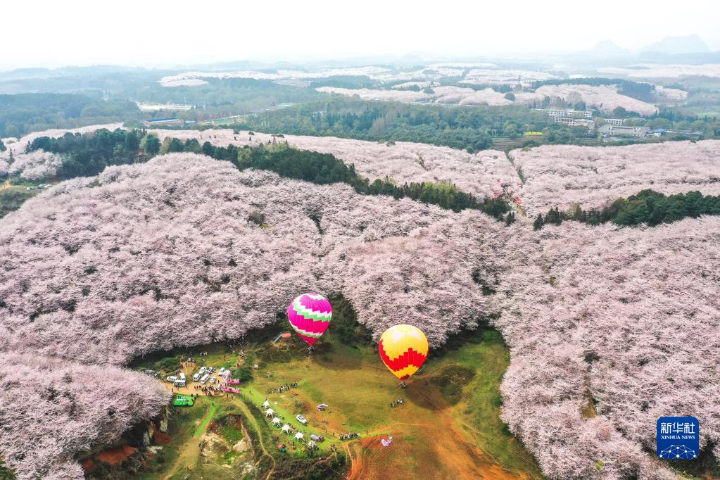 3月21日拍攝的貴州省貴安新區(qū)櫻花園(無人機(jī)照片)。新華社記者 陶亮 攝