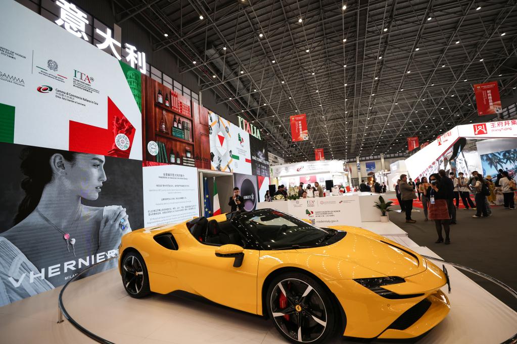 這是2023年4月10日拍攝的消博會意大利館展出的跑車。新華社記者 張麗蕓 攝