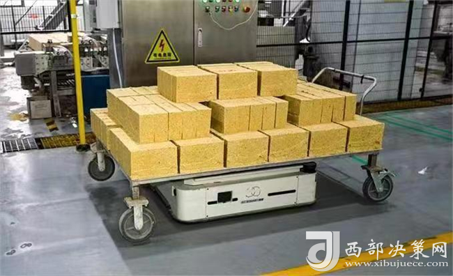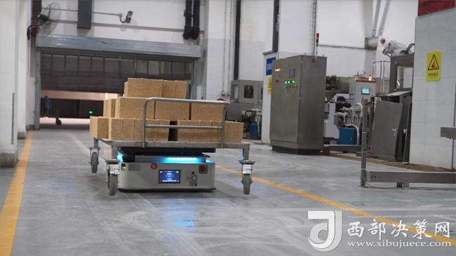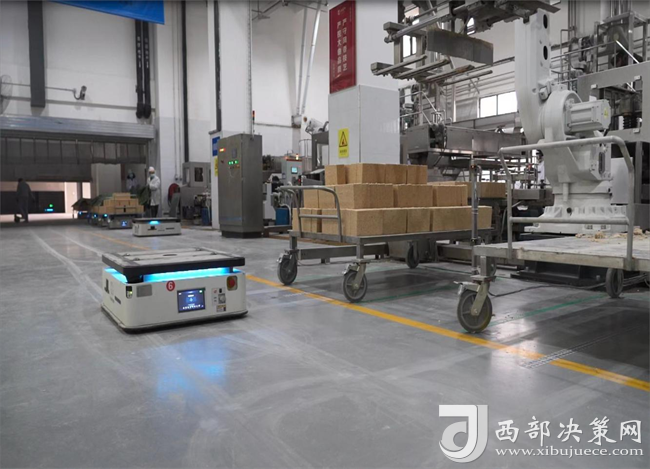“駛?cè)搿㈨斊?、旋轉(zhuǎn)、前進……”一走進西鳳酒智能化技改701制曲車間,記者就看到一個個散發(fā)著科技光輝的“板車寶寶”穿梭在車間的運輸通道上,有條不紊地進行著曲塊運輸工作。