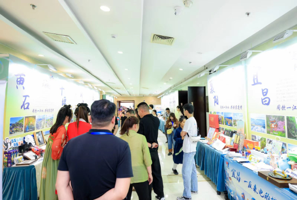 2023“極目楚天·鐘情湖北”文旅推介會現(xiàn)場展臺。