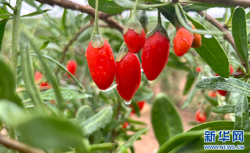 新華網(wǎng)銀川6月18日電 夏雨潤澤煥然新。18日,以“六月頭茬枸杞紅 開園采摘享健康”為主題的第六屆枸杞產(chǎn)業(yè)博覽會(huì)枸杞開園節(jié)在中國供銷惠農(nóng)·璽贊生態(tài)枸杞莊園開幕。一場(chǎng)雨讓頭茬枸杞鮮果嬌艷欲滴,分外惹人。