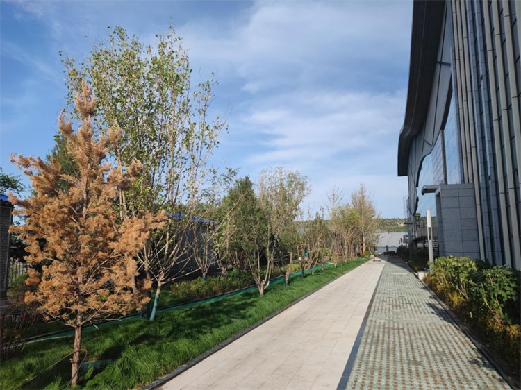 本次景觀提升工程主要對(duì)職工餐廳、文體中心北側(cè)的破損場(chǎng)地進(jìn)行了破除,對(duì)地平進(jìn)行修整后,重新種植了白皮松、叢生五角楓、白蠟、紅瑞木、水蠟等苗木。在留出人行通道的基礎(chǔ)上,設(shè)計(jì)了塑膠跑道,其余部分鋪設(shè)了草坪,并對(duì)區(qū)域圍墻進(jìn)行了修護(hù)。考慮到職工鍛煉休閑的實(shí)際需求,本次景觀提升工程還新安裝了一座公共廁所,設(shè)置了專門的吸煙區(qū)。