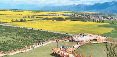 7月,青海省門源回族自治縣油菜花綻放,一蓬蓬、一簇簇迎風(fēng)舞動(dòng),宛如金色的海洋。付利攝