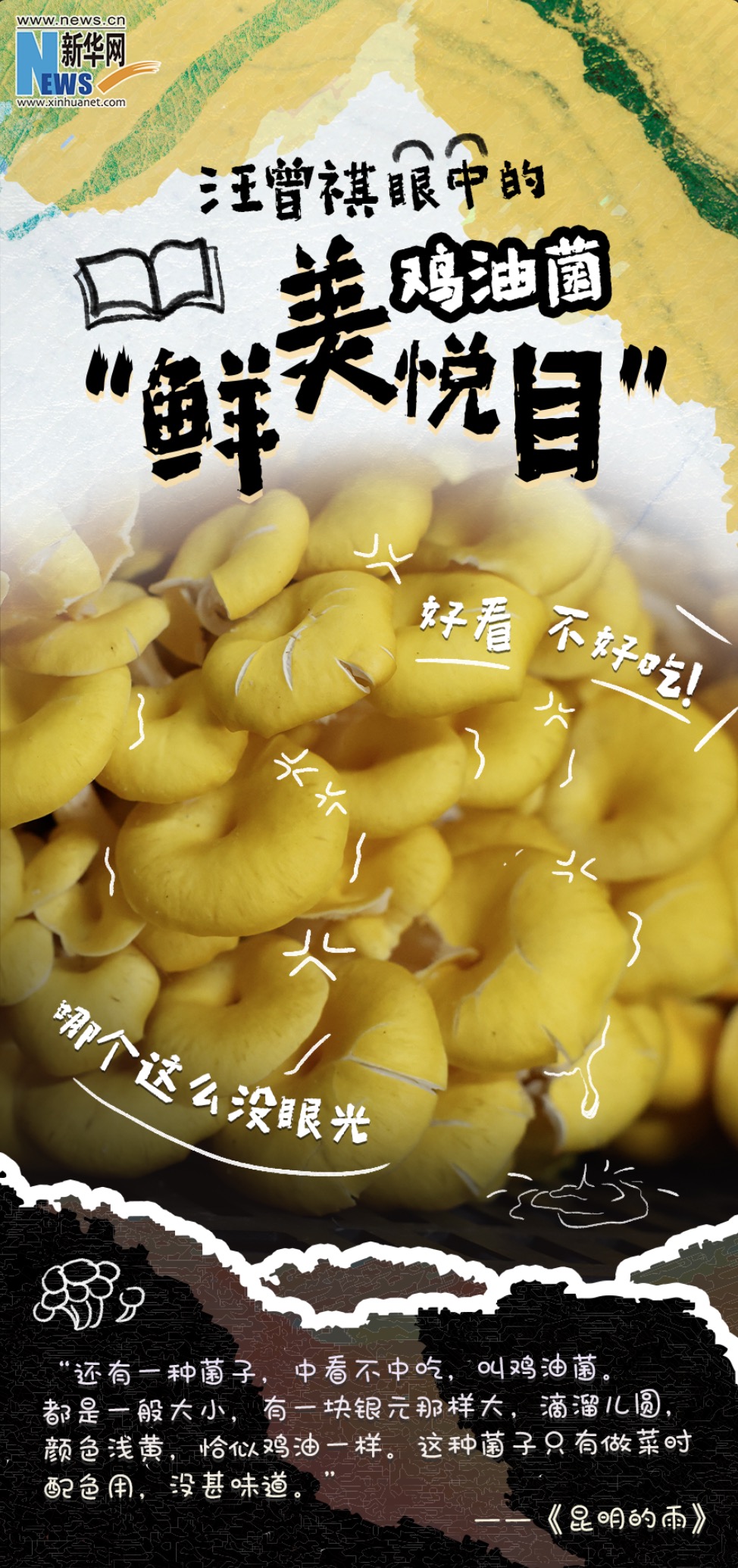 色彩是食物的殺手锏,暖黃色常常激起人們的食欲。雞油菌天然的色彩,很難讓人不聯(lián)想到云南的明媚陽光。汪曾祺的美食散文中常常蘊含著美食文化的哲思,他用雞油菌作為菜品的配色,也頗有些食物特有色彩美學的雅趣。