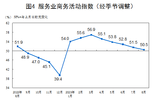 8月份,非制造業(yè)商務(wù)活動指數(shù)為51.0%,比上月下降0.5個百分點,仍高于臨界點,非制造業(yè)持續(xù)擴(kuò)張。