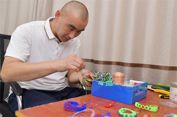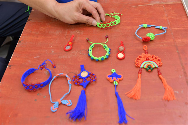 在一張約一平方米的桌子上,擺滿了小燈籠、小手鏈、小掛件……看著如此精致、細(xì)小的工藝品,一位心靈手巧的姑娘形象便會映入眼簾。