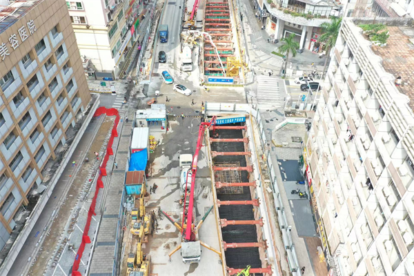 該站位于深圳福田鬧市區(qū),地下管線眾多復(fù)雜,管線保護壓力大;施工場地狹小,施工車輛作業(yè)受限;周邊環(huán)境復(fù)雜,需多次倒邊,嚴(yán)重制約著施工進度。項目始終堅持策劃先行,方案創(chuàng)效的管理思路,采取加強工序銜接,優(yōu)化施工過程;增加施工機械、人員等投入,形成多個作業(yè)面施工;調(diào)整作息時間,管理人員與施工班組同步上下班等多種舉措,克服各種施工限制,安全有力推進施工進度。后續(xù)施工中,項目部以“大干一百天 決勝四季度 沖刺全年任務(wù)目標(biāo)”勞動競賽為契機,現(xiàn)場施工“全面開花”,緊盯節(jié)點目標(biāo),搶抓形象進度,盯牢安全質(zhì)量,全力攻堅年度目標(biāo)。(文/張倩)