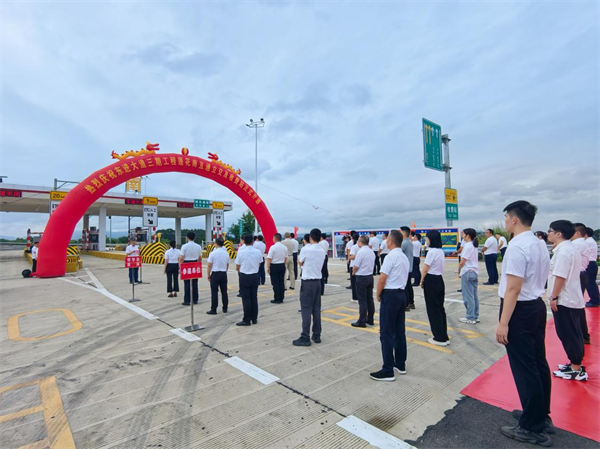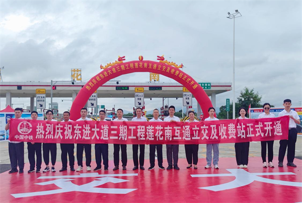 10月8日,由中鐵一局一公司承建的肇慶東進(jìn)大道三期工程蓮花南互通立交及收費(fèi)站正式開(kāi)通運(yùn)營(yíng)。肇慶市副市長(zhǎng)謝桂坤,中鐵一局副總經(jīng)理郭秀春,中鐵一局一公司總經(jīng)理韓勝等相關(guān)領(lǐng)導(dǎo)以及肇慶市政府有關(guān)部門、市交通集團(tuán)、設(shè)計(jì)、監(jiān)理和項(xiàng)目參建人員現(xiàn)場(chǎng)共同見(jiàn)證蓮花南互通立交及收費(fèi)站開(kāi)通。