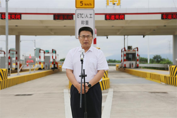 肇慶市副市長(zhǎng)謝桂坤宣布東進(jìn)大道三期工程蓮花南互通立交及收費(fèi)站正式開(kāi)通