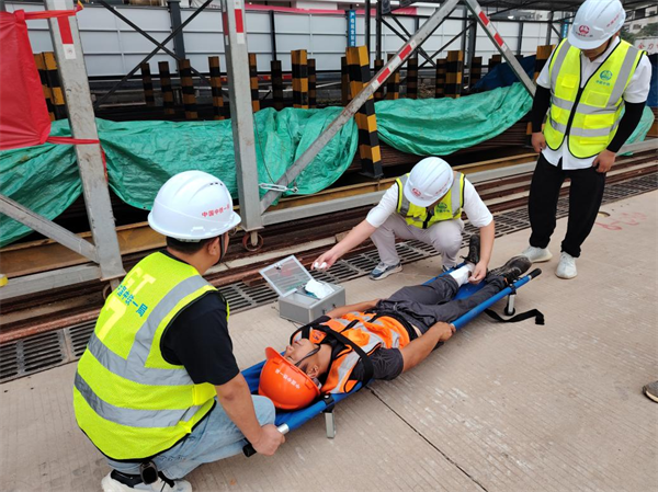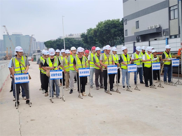 演練模擬項(xiàng)目車站在深基坑土方開挖過程中出現(xiàn)涌水涌泥緊急情況,接到“險(xiǎn)情”匯報(bào)后,項(xiàng)目負(fù)責(zé)人歐瓊第一時(shí)間迅速啟動(dòng)應(yīng)急預(yù)案,立即組織疏散警戒組人員到達(dá)現(xiàn)場(chǎng)緊急疏散人群,做好警戒,確保搶險(xiǎn)道路暢通。應(yīng)急演練從發(fā)現(xiàn)險(xiǎn)情、啟動(dòng)應(yīng)急預(yù)案、應(yīng)急搶險(xiǎn)到恢復(fù)正常生產(chǎn)秩序,時(shí)長(zhǎng)近60分鐘,啟用各類車輛、機(jī)械10多輛(臺(tái))。演練人員聞警而動(dòng),各個(gè)環(huán)節(jié)緊密銜接,各職能部門密切配合,處置得當(dāng),搶險(xiǎn)反應(yīng)迅速,在短時(shí)間內(nèi)完成了搶險(xiǎn)救援工作,整個(gè)演練過程緊張有序,取得了良好的效果。