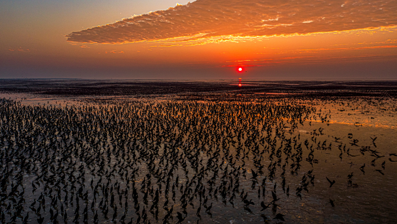 山東黃河三角洲自然保護(hù)區(qū)內(nèi)的候鳥集群 張曉龍攝(國家林草局供圖)