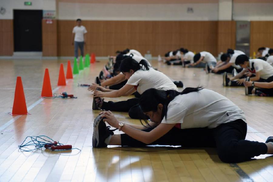 必考項目包括1000米跑(男生)、800米跑(女生)、1分鐘跳繩,每項滿分15分。男生選考項目包括立定跳遠、50米跑、單杠引體向上、前擲實心球,女生選考項目包括立定跳遠、50米跑、1分鐘仰臥起坐、前擲實心球。各市、縣(區(qū))教育行政部門每年在規(guī)定的選考項目范圍中隨機抽取一項作為當年的考試項目,滿分10分。各地抽取選考項目時間必須在每年春季學(xué)期開學(xué)后進行,并及時向考生和社會公布,轄區(qū)內(nèi)所有考生統(tǒng)一參加該項測試。