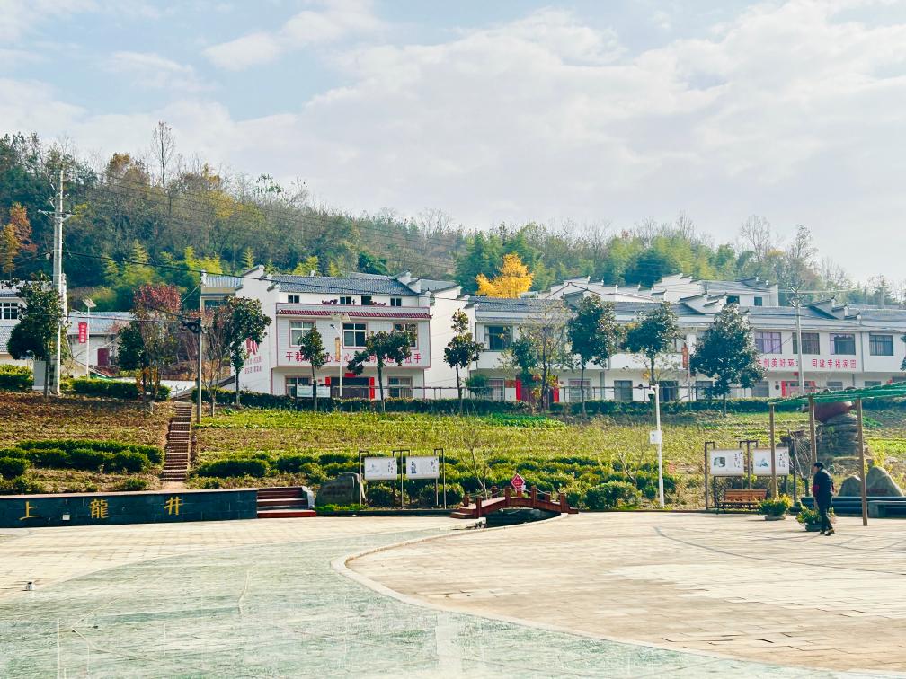 走進竹山縣寶豐鎮(zhèn)龍井村,白墻黑瓦的村舍掩映在青山綠水間,山坡上茶樹整齊排開,一座座溫室大棚里種有各類蔬菜瓜果,農(nóng)家樂和民宿游客不斷,呈現(xiàn)出美麗鄉(xiāng)村的幸福圖景。