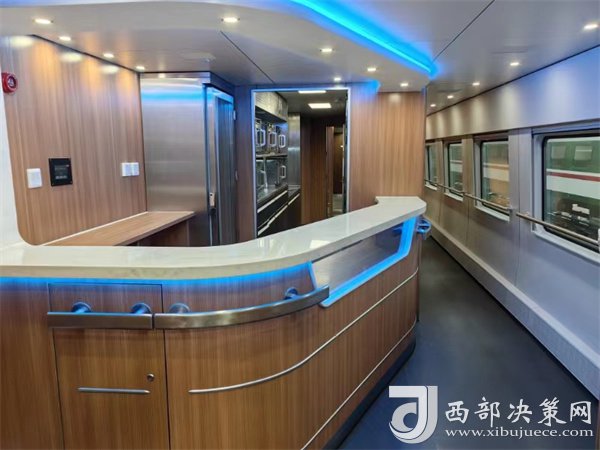 與此同時,考慮到長途旅行的需求,該新型動車組列車餐吧車擁有更大的餐吧及后廚空間,擁有微波爐、單門冷藏柜、雙門冷藏冷凍柜、單門保溫柜,以保證旅客就餐需求。