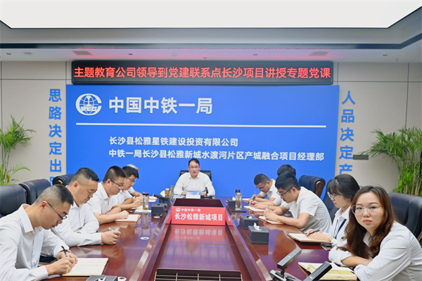 近日,中鐵一局一公司副總經(jīng)理裴賀元到長沙縣產(chǎn)城融合項(xiàng)目部調(diào)研,并為全體黨員干部講授主題教育專題黨課。