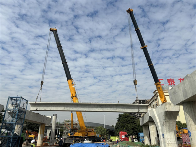 12月26日,中鐵一局佛山市南海區(qū)有軌電車項(xiàng)目重要施工部位佛山一環(huán)跨線橋左幅首片25米箱梁Z10-1#內(nèi)邊梁順利架設(shè),標(biāo)志著該工程正式啟動橋梁上部結(jié)構(gòu)施工,為施工進(jìn)度按下了“加速鍵”。