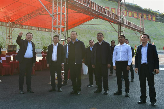 12月28日,在偉隆高速隆林東收費(fèi)站舉行的開(kāi)通儀式上,廣西交投總經(jīng)理劉鑫介紹項(xiàng)目情況,廣西百色市領(lǐng)導(dǎo)講話(huà),廣西自治區(qū)交通運(yùn)輸廳黨組成員李德春講話(huà)并宣布隆林委樂(lè)至革步高速公路一期工程建成通車(chē)。