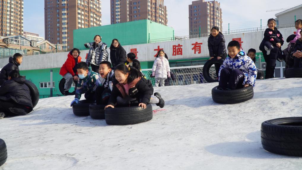 2023年12月31日,沈陽市渾南區(qū)第九小學學生在玩雪。(學校供圖)