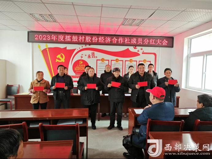 西部決策網(wǎng)訊(記者帥華鋒 通訊員 張曉丹)新春將至,擂鼓村的村民迎來一件喜事。1月18日,甘肅省兩當縣西坡鎮(zhèn)擂鼓村股份經(jīng)濟合作社召開2023年度分紅大會,分紅現(xiàn)場氣氛熱烈,喜氣洋洋。