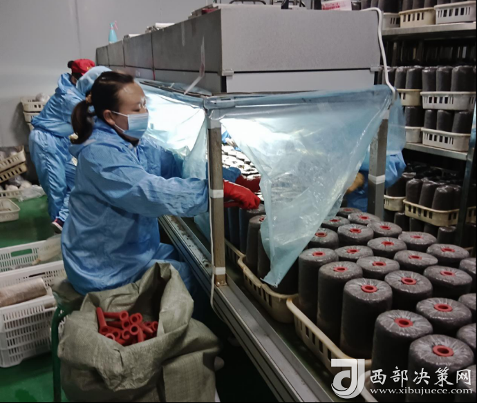 伴隨著機械的聲響,菌棒生產(chǎn)車間里的工人們忙中有序,一堆堆木屑通過攪拌、裝袋、滅菌、接種等工序,變成了一個個菌棒,源源不斷地走下生產(chǎn)線,走進養(yǎng)菌室,孕育著致富的希望。